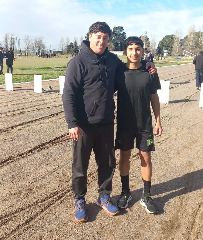 Junto a su entrenador Cristian Lian, el joven Ceballos eligió participar en la final proviincial en la prueba de lo 80 metros llanos.