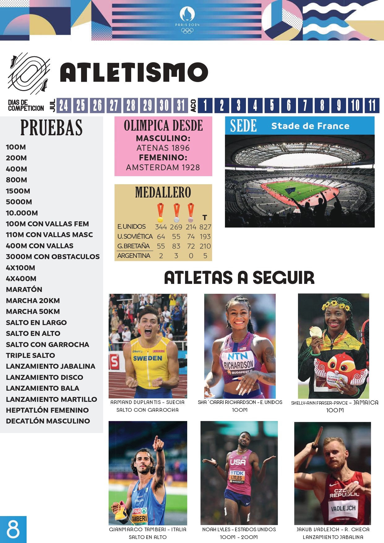EL ATLETISMO EN LA EDICION JJ00 PARIS 2024
