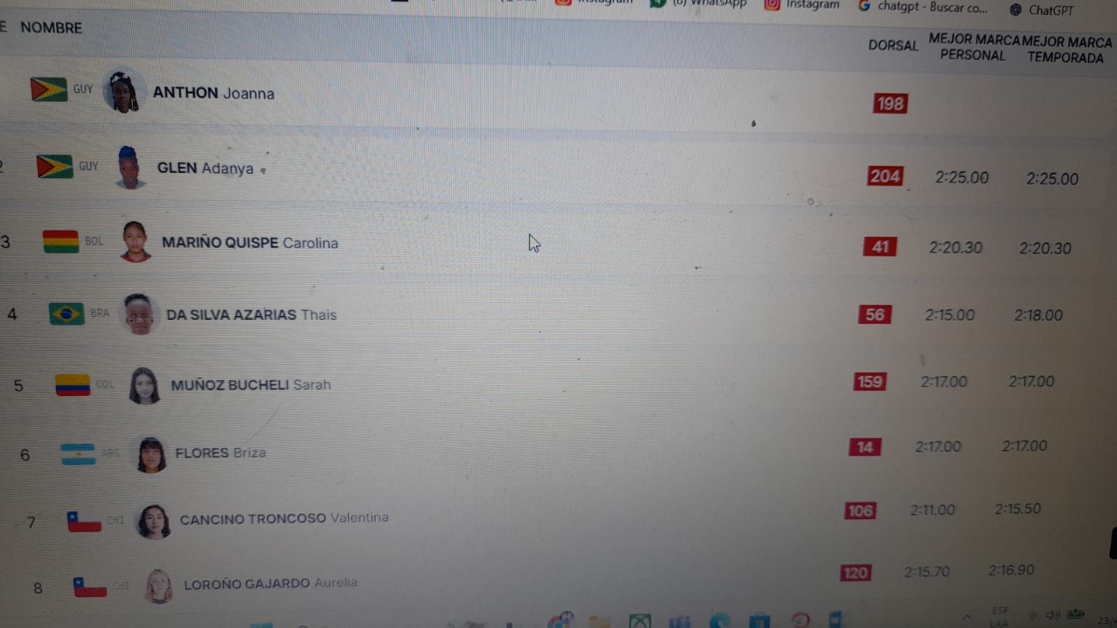 Se conocen las rivales de Brisa Morena Flores para la final de los 800 metros a disputarse este viernes24, desde las 13,15 hs, en el marco de la tercera jornada del atletismo en los Juegos Suramericanos de la Juventud que se disputan en Panamá.