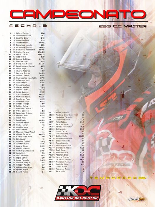 El tercero en esa clase y también con chances es el piloto Ezequiel Cavilglia, con 215 puntos y cuarto y hasta ahí con posibilidades esta Marcelo Barresi, con 211.
