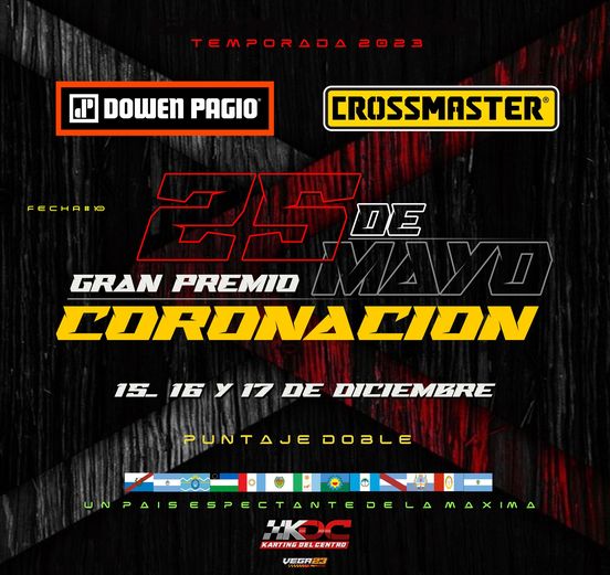 Una gran fecha que será esperada por todos ya que serán las 11 divisionales en definir el monarca 2023 de la agrupación mas importante del país. La fecha pactada para el gran premio coronación DOWENPAGIO – CROSSMASTER será el 15,16 y 17 de diciembre y el escenario será el kartodromo de la localidad de 25 de mayo con sentido de giro antihorario y además con la particularidad de su puntaje especial como fue establecido a principio de temporada, se prepara una gran fiesta para la última del año del Karting del centro 2023.