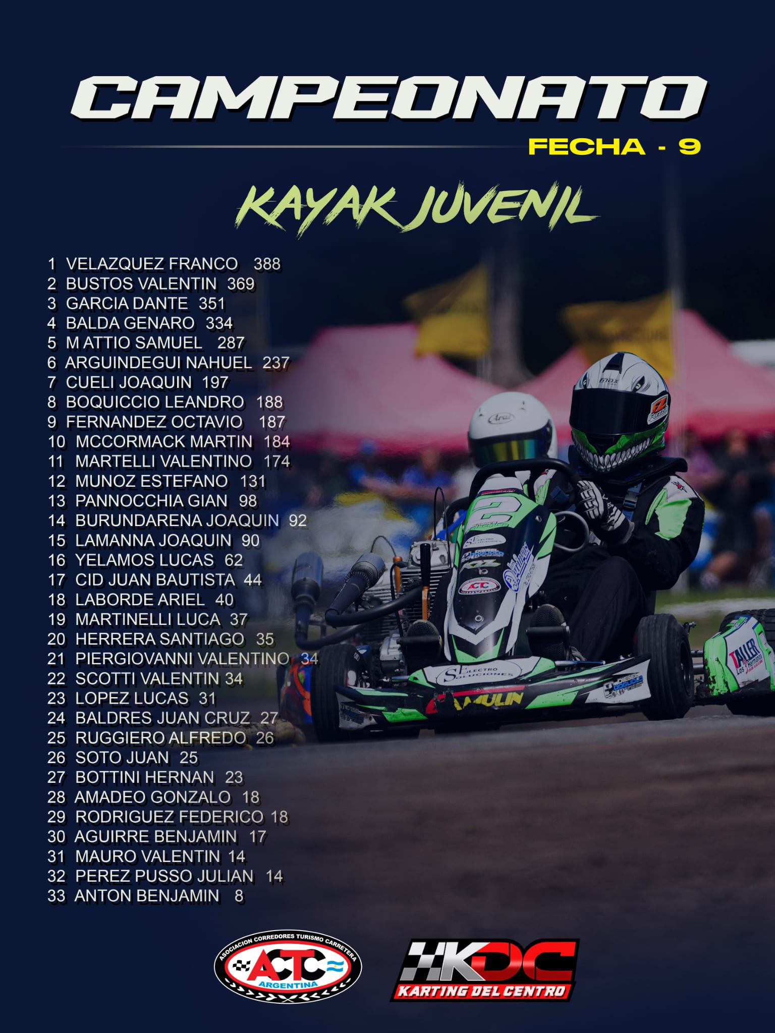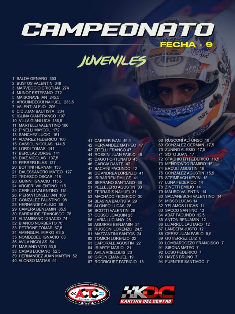 En Bragado se definirán todos los títulos. En la clase Kayak 250 Juveniles, llega como líder del campeonato el piloto de Trenque Lauquen, Franco Velázquez con 388 puntos, escoltado por Valentín Bustos con 369, Dante Garcia con 351 y Genaro Balda con 334. Son apenas 19 puntos los que separan al puntero de su escolta.