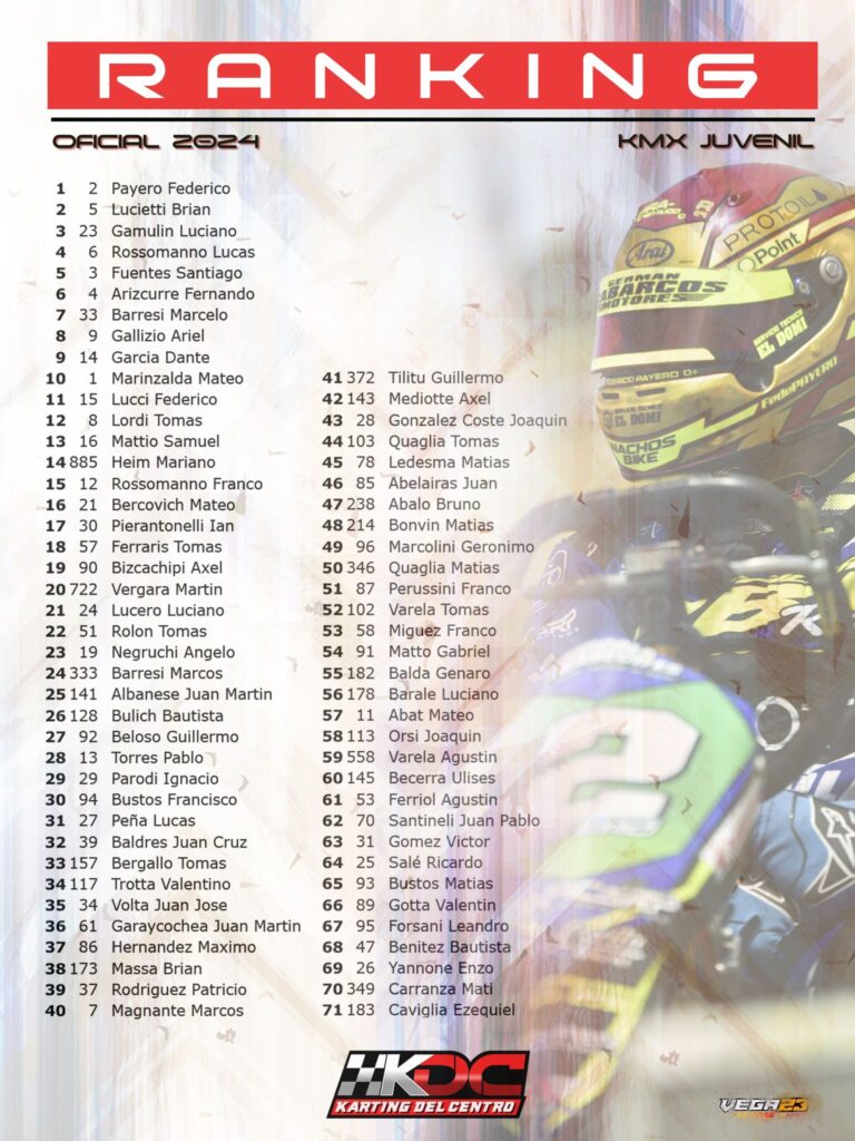 EL RANKING OFICIAL TEMPORADA 2024 DE TODAS LAS CLASES
