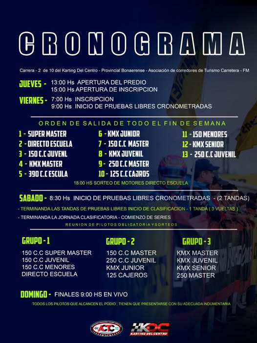 Cronograma de actividades del karting del Centro en la localidad de Chacabuco ..