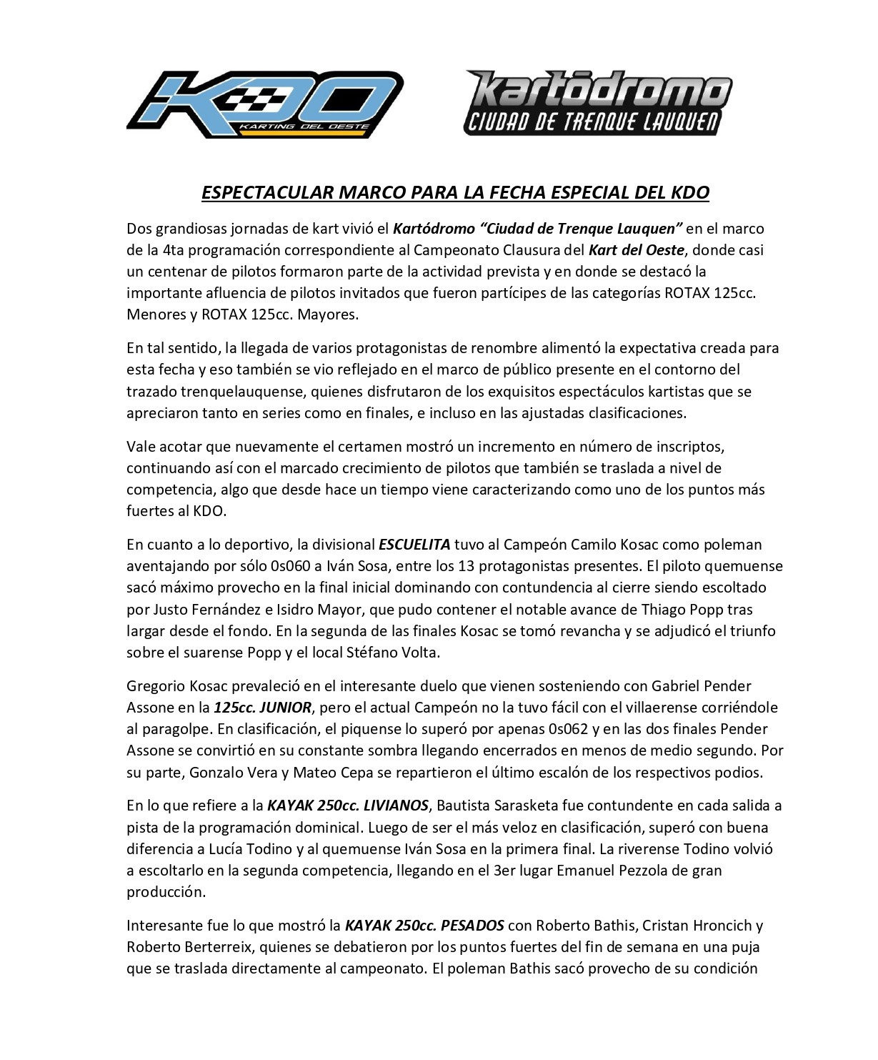 PASO LA 4TA FECHA DEL KART EN EL GIGANTE DE TRENQUE LAUQUEN