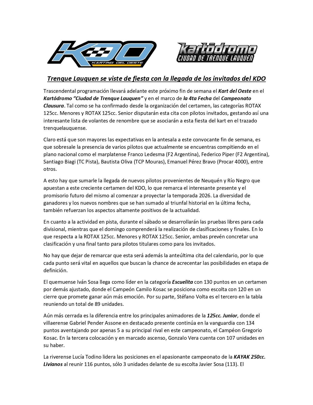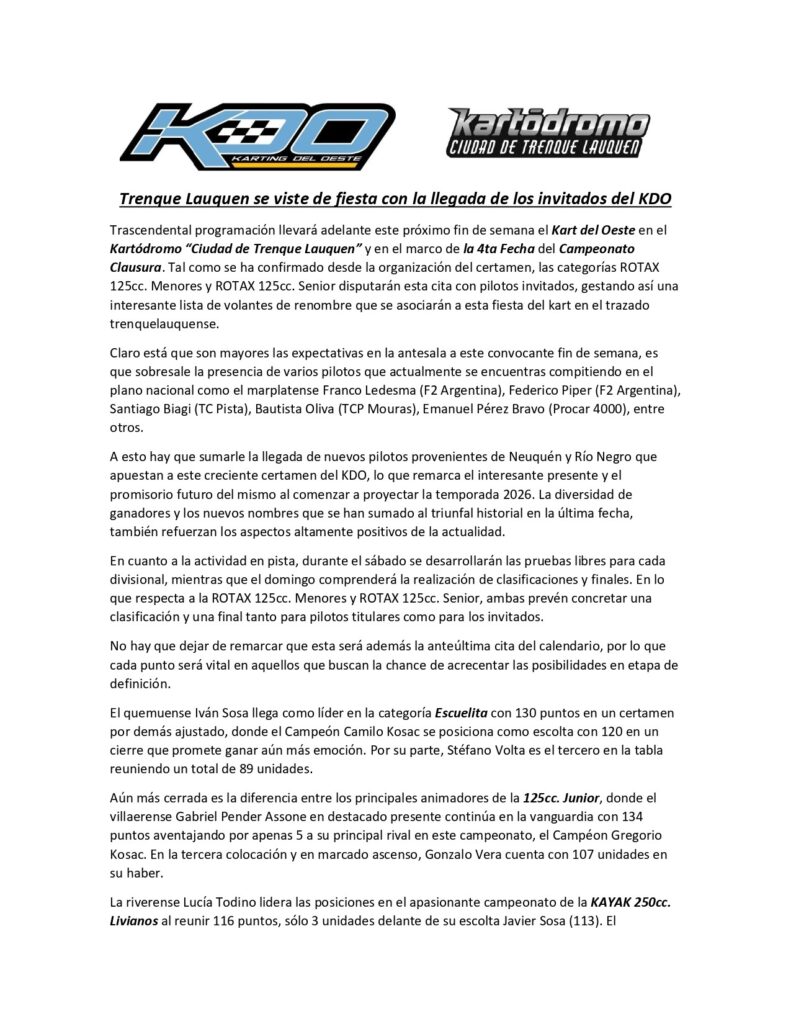 SE CORRERA CON PILOTOS INVITADOS EN LAS DOS CLASES DE LA ROTAX