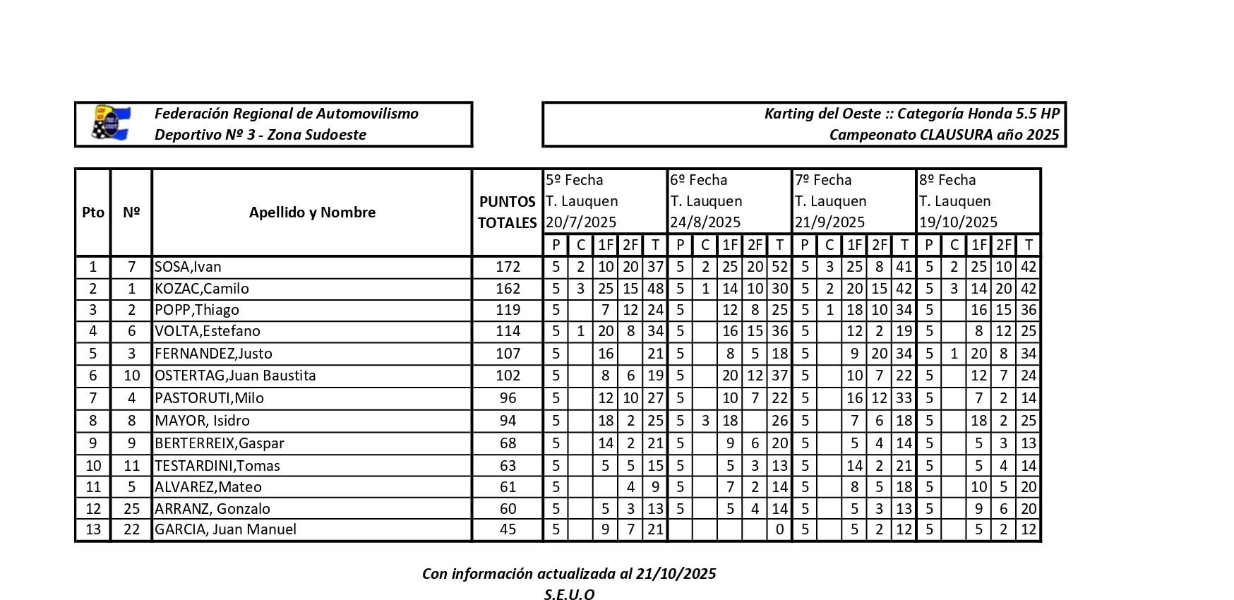TORNEO CLAUSURA DEL KARTING DEL OESTE