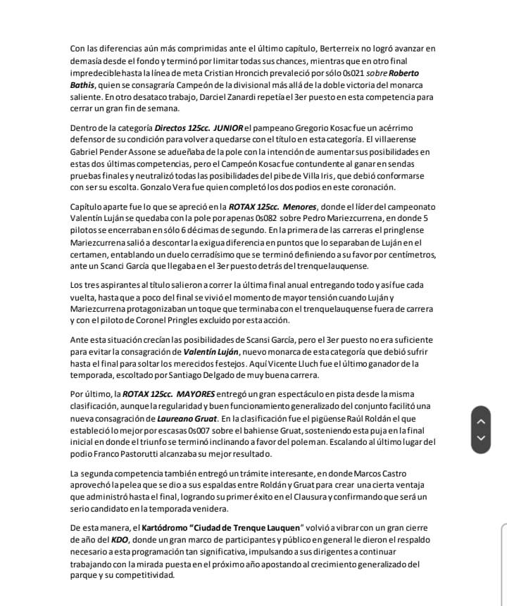 LOS TRENQUELAUQUENSES VALENTIN LUJAN Y ROBERTO BATHIS ENTRE LOS CAMPEONES