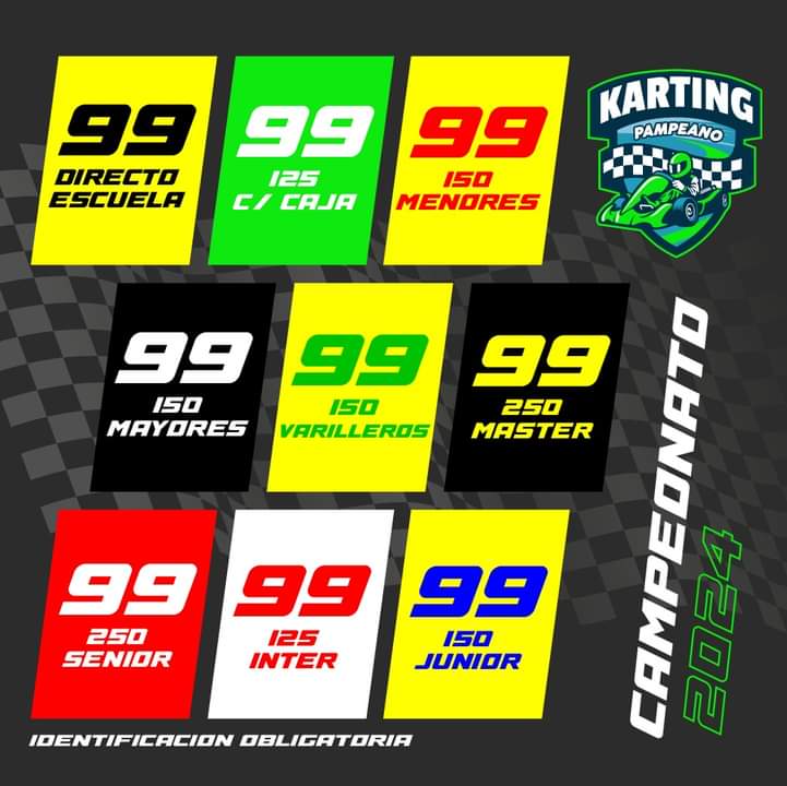 Cada piloto deberá respetar los colores de número y fondo correspondiente en el karting.