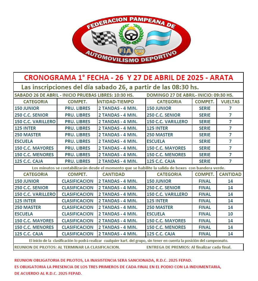 La FEPAD dio a conocer el cronograma oficial para 1ra fecha en ARATA.