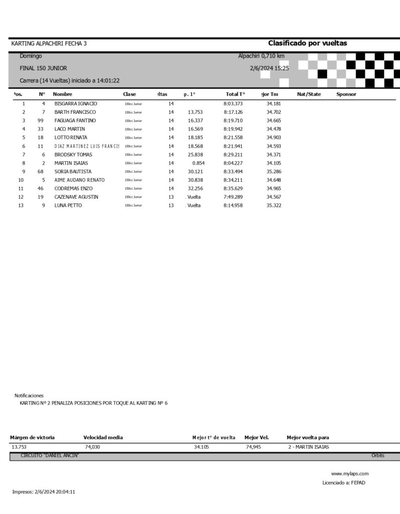 Algunos resultados de la tercera fecha del Kart pampeano disputada en Alpachiri.