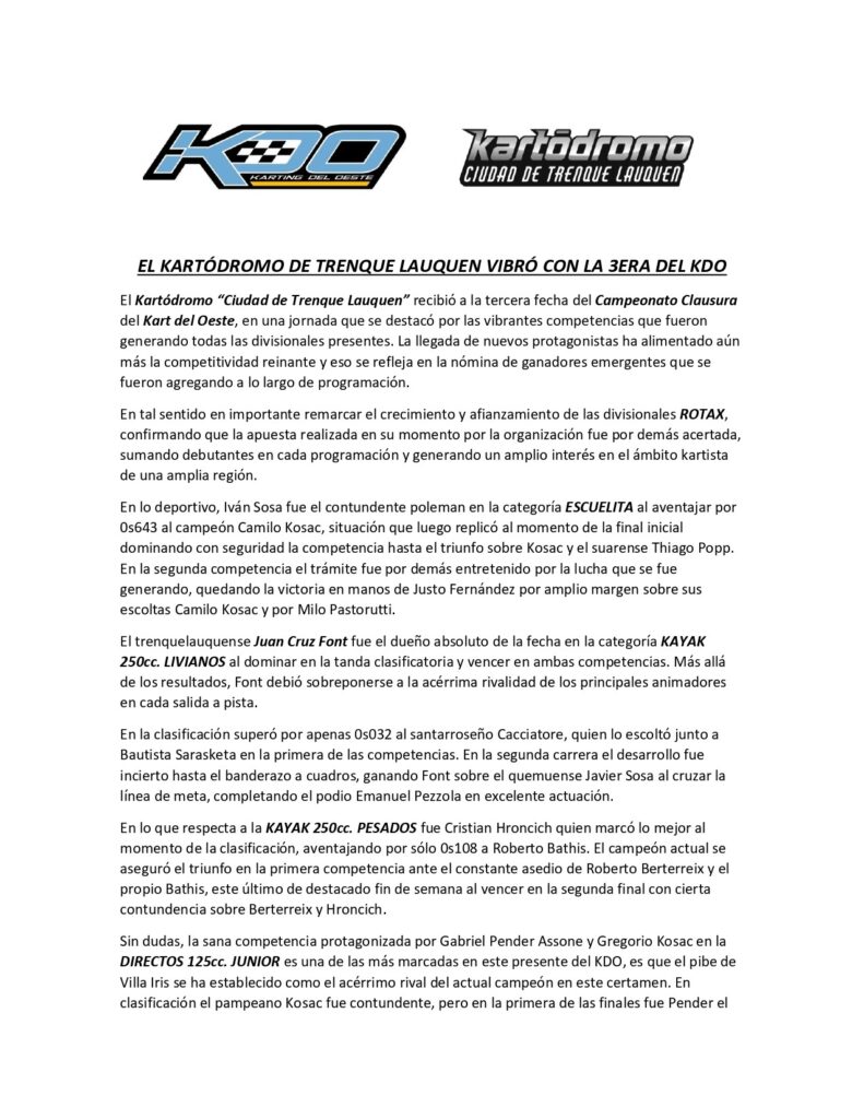 KDO-TORNEO CLAUSURA-FECHA N°3 Kartodromo Ciudad de T.Lauquen