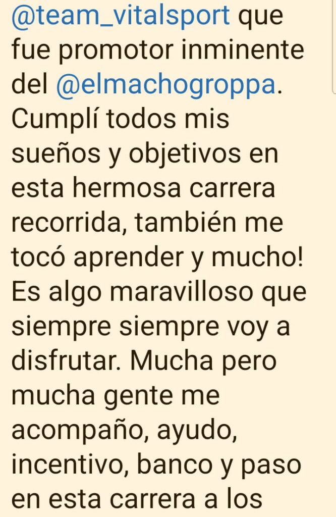 Un gran campeón de Trenque Lauquen anuncio su retiro de la actividad en su red social Facebook.