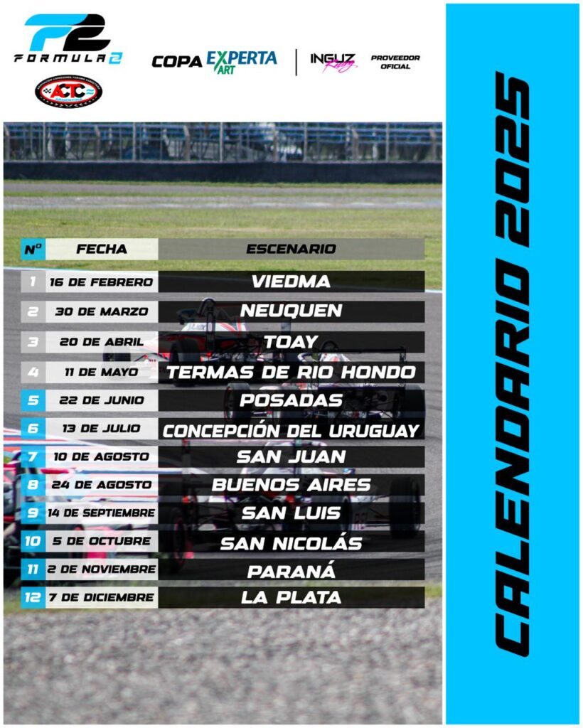 La categoría Formula 2 Argentina completo su calendario 2025, el cual se inicio este año el pasado 16 de febrero en Viedma.