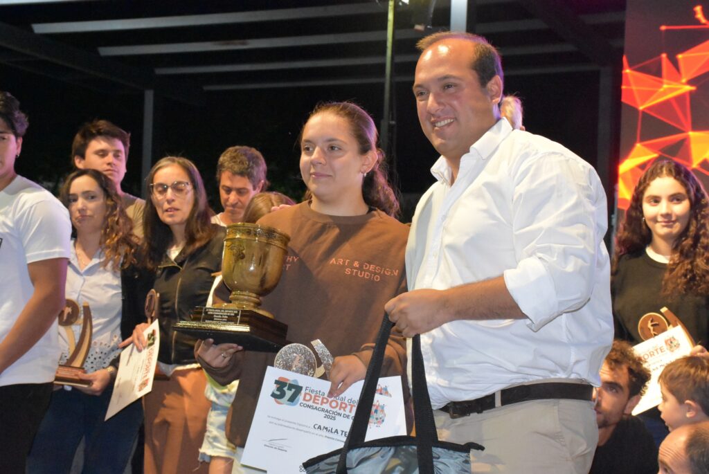 En un evento colmado de emociones, Horacio Sayago y Camila Tello fueron coronados anoche (martes) con los premios Revelación de Oro y Consagración de Oro 2025 respectivamente, en la 37° Fiesta Anual del Deporte organizada por la Municipalidad de Trenque Lauquen. Además, Ricardo “Vasco” Saragüeta fue reconocido como Embajador Deportivo, hubo una mención especial en memoria de Cleman Azpiroz y reconocimientos a deportistas de todo el distrito. En tanto que la distinción a Labor Comunitaria fue otorgada a la Cooperativa Social de inclusión laboral “El Pase”.