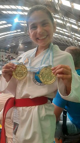 La competidora local es entrenada por el campeon mundial oriundo de Pellegrini, Sabon Renzo Vincet de la Escuela de Taekwondo ITF Quemu Quemu.