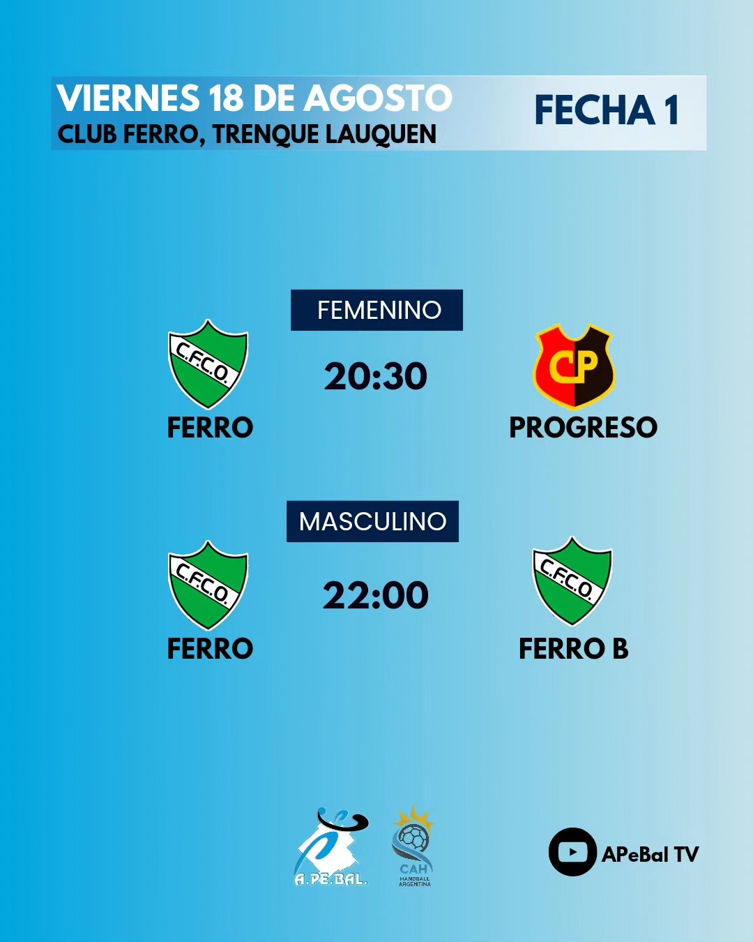 La acción de la primera fecha comienza hoy en el Gigante de la Avenida en Trenque Lauquen y se completa en el Club Defensores del Este de Pehuajó.