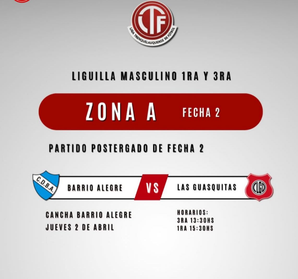 | Guerra Tomas | 16304 | Barrio Alegre | 1ra | 29/03/2026 | 1 |