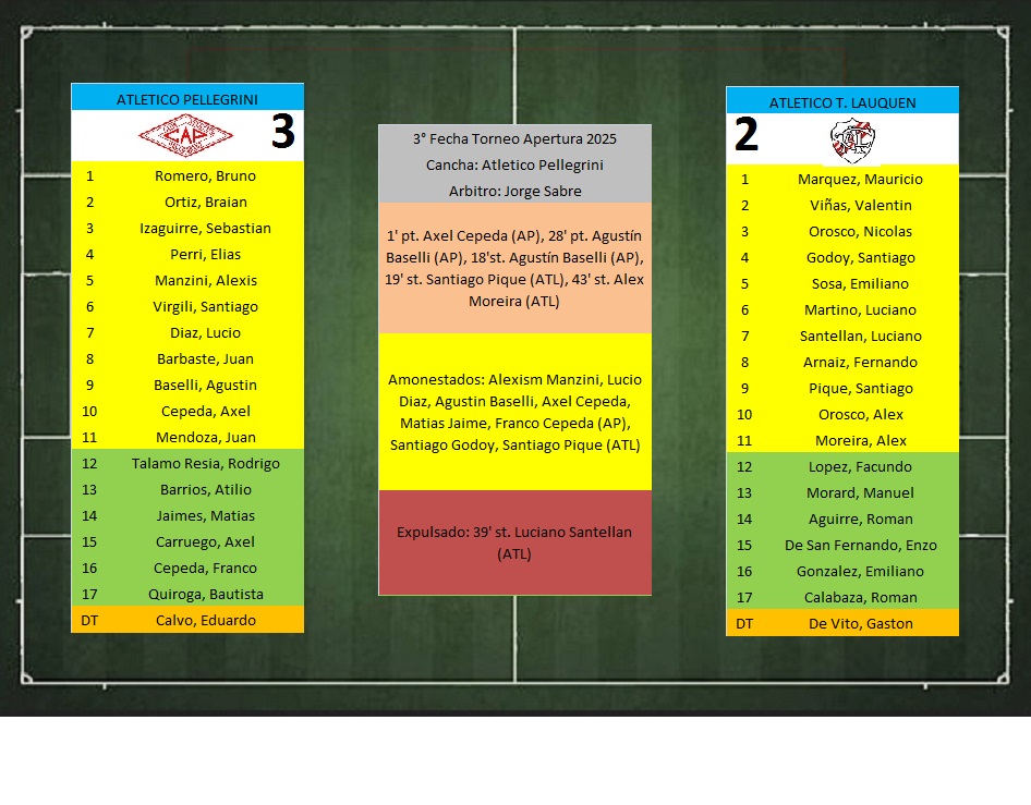 LTF 1° Division – Sintesis: Atletico Pellegrini 3 Atletico T. Lauquen 2