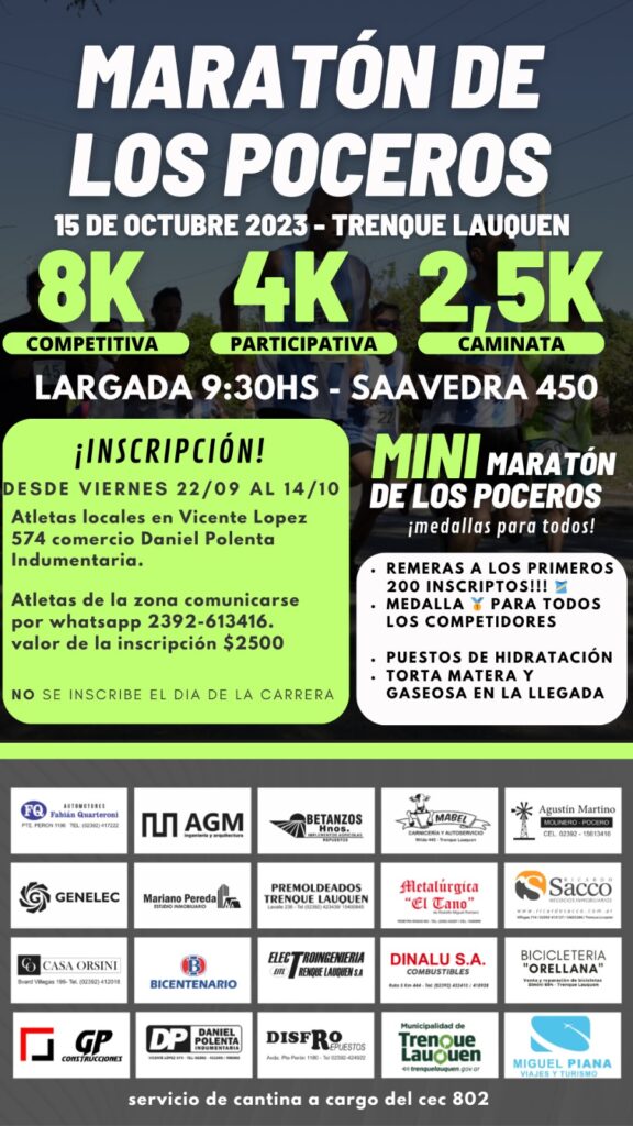 Este sábado al medio día 14 de Octubre, cierra la inscripción de la Maratón de los Poceros.