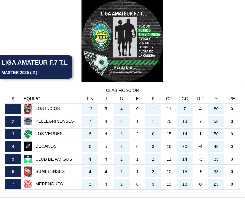 Los indios venían de ganar 4 de 4 , pero en esta fecha 5 el equipo de PELLEGRINENSES le ganó al puntero y se acomoda para pelear el torneo , los indios a pesar de la derrota siguen como único y cómodo líder .