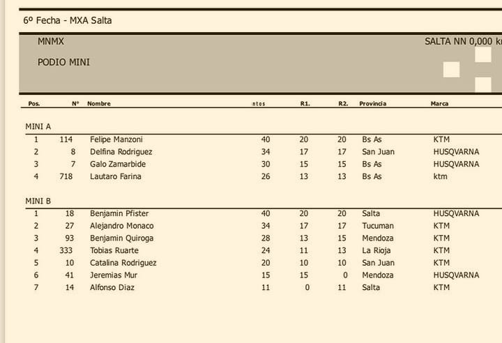 La 6ta fecha del prestigioso campeonato nacional de motocross se llevo a cabo este fin de semana en el circuito de los hermanos Benavides, Mantillo Mx Park, ubicado en Rocunilla RN9, los días sábado 9 y domingo 10 de septiembre.