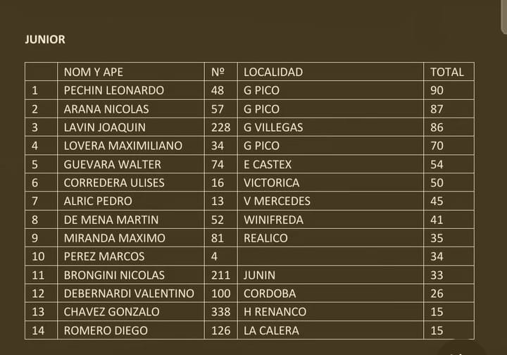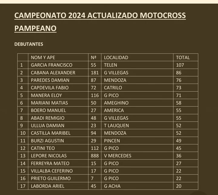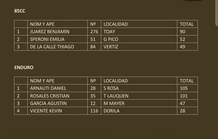 En Enduro es líder Arnaudo con 104, Rosales escolta con 101.
