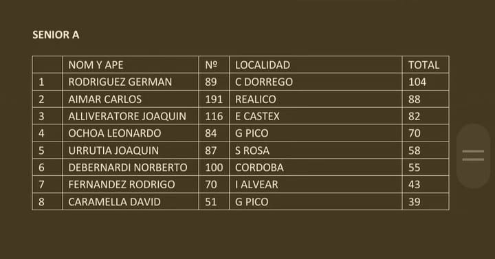 En la Senior B con una fecha sola, Juan Perona esta décimo segundo con 26 puntos.