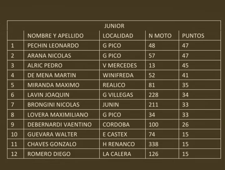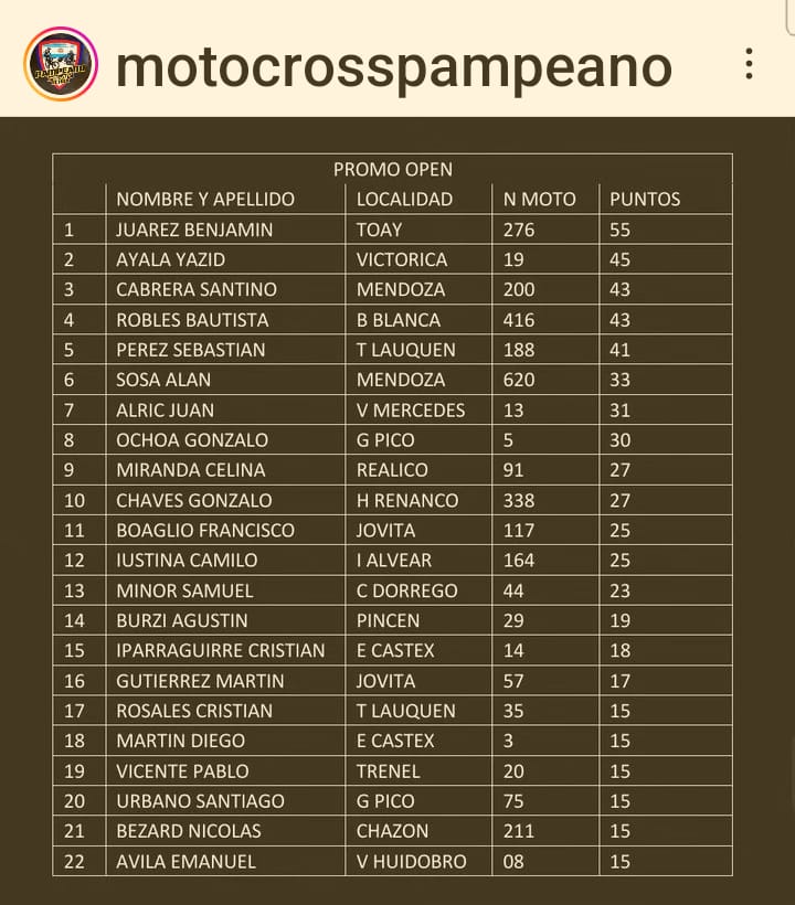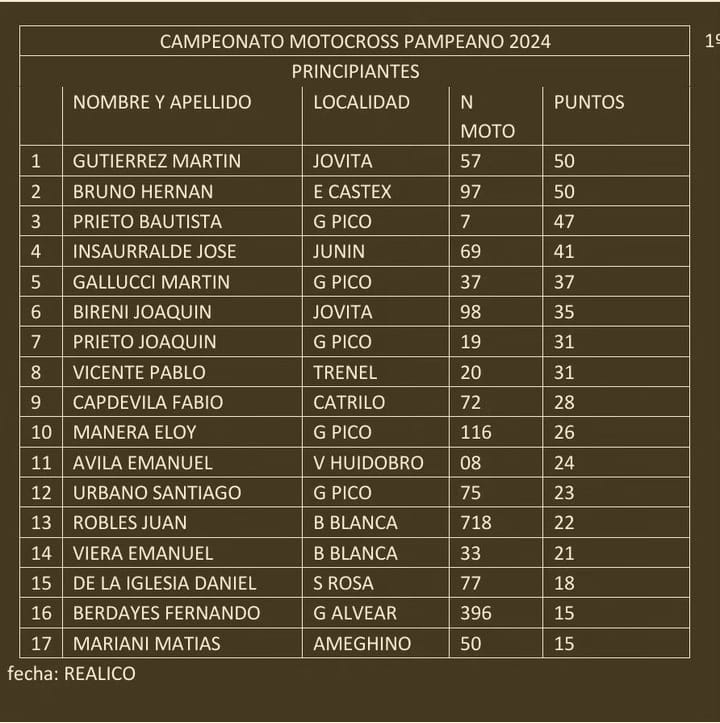 El campeonato provincial Mx Pampeano dio comienzo hace unos dias en Realico. Asi quedaron los campeonatos.