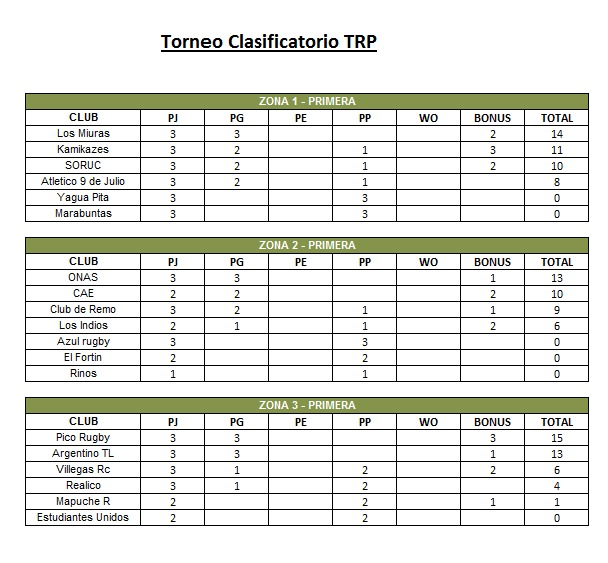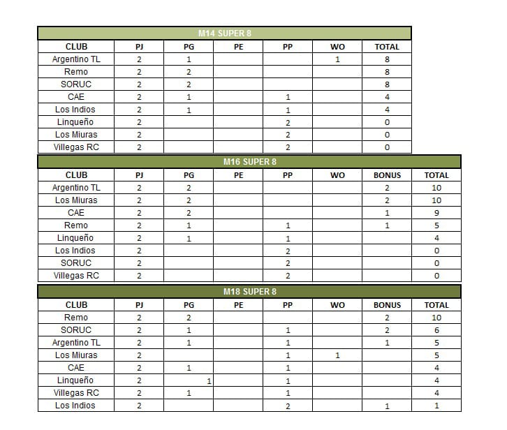 Tabla de Posiciones de Primera y Juveniles masculinos.