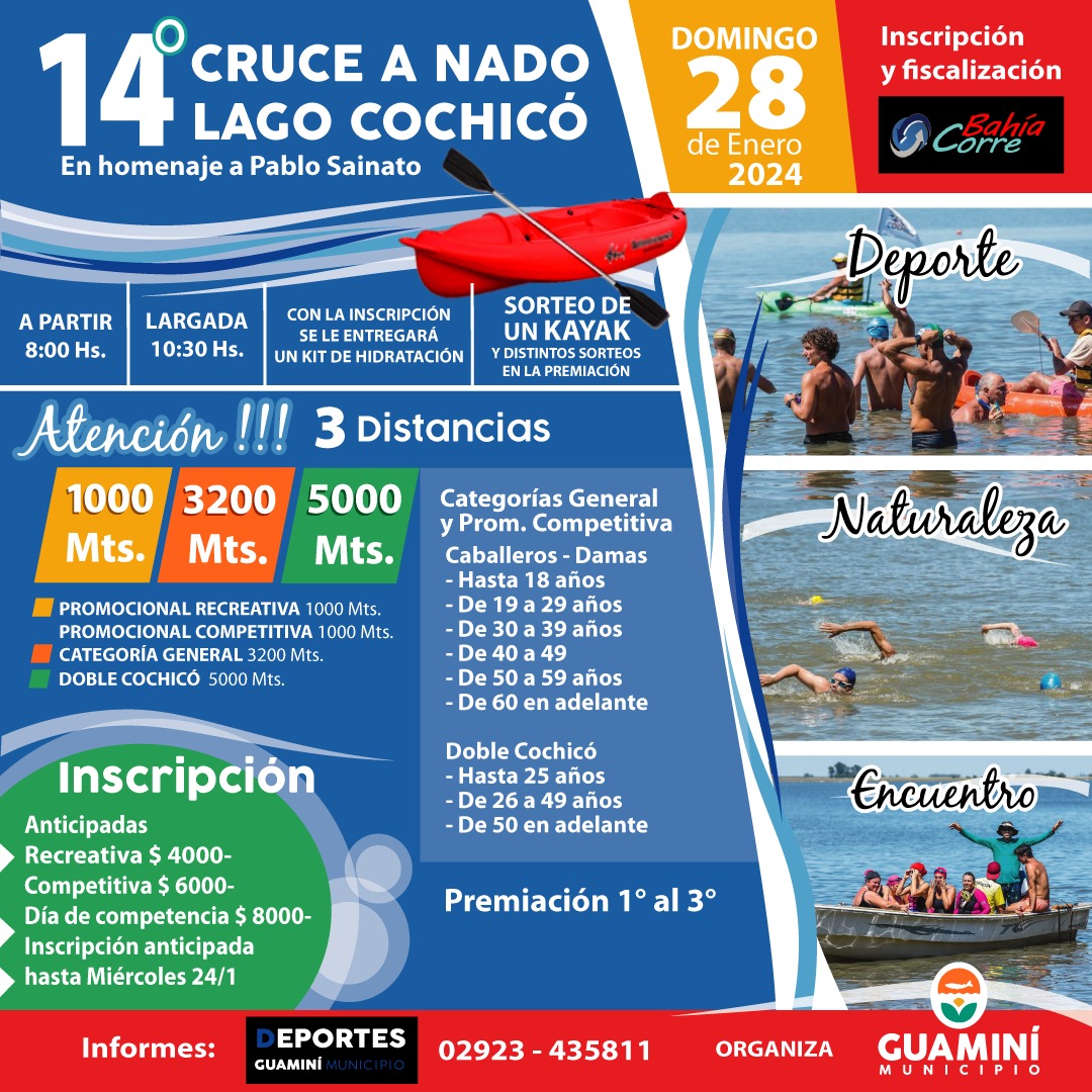 ¡Te recordamos que este DOMINGO 28 de enero llega la 14° EDICIÓN DEL CRUCE A NADO en VILLA TURÍSTICA COCHICÓ!