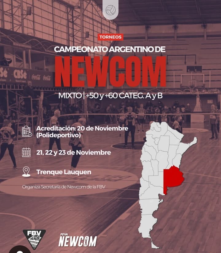 Desde el viernes 21 al domingo 23 de noviembre, Trenque Lauquen volverá a ser sede de un campeonato Argentino de Newcom. En el polideportivo municipal como escenario principal, durante tres días se disputará el nacional Mixto de las categorías +50 y +60 años, en divisionales A y B.