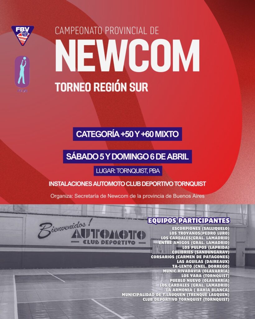El fin de semana del sábado 5 y domingo 6 de abril habra un torneo Provincial de Newcom en Tornquist.