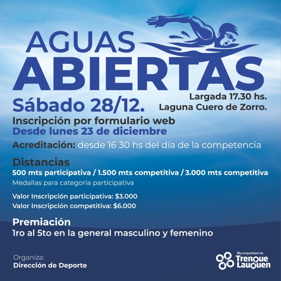 El sábado próximo (28) desde las 17.30 en la laguna Cuero de Zorro tendrá lugar la tradicional Maratón Aguas Abiertas organizada por la dirección de Deporte del municipio.