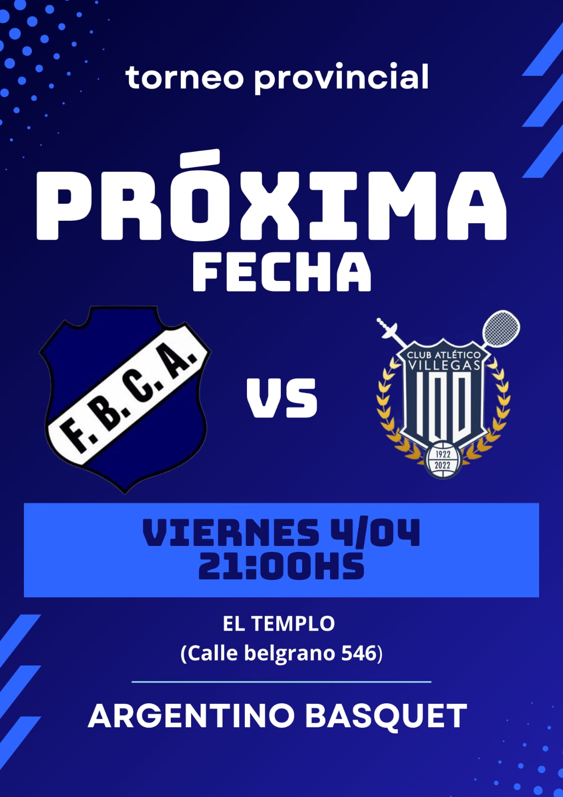 Este fin de semana será pleno de compromisos para el básquetbol de nuestra institución en el certamen pampeano. Comenzaremos el día viernes, como locales en nuestra cancha recibiendo al Atlético Villegas en Primera División a partir de las 21 horas. Los encuentros continuarán el sábado visitando a los villeguenses en todas las categorías formativas: U13, U15, U17 y U21. Para cerrar un fin de semana pleno de actividades, el domingo será el debut del U13 femenino, en este caso visitando al poderoso All Boys de Santa Rosa. Los invitamos a todos a acompañar a nuestros equipos, tanto de locales como de visitantes y a apoyarnos con su aliento en la intención de continuar en la buena senda que venimos transitando en el exigente torneo de la vecina provincia.