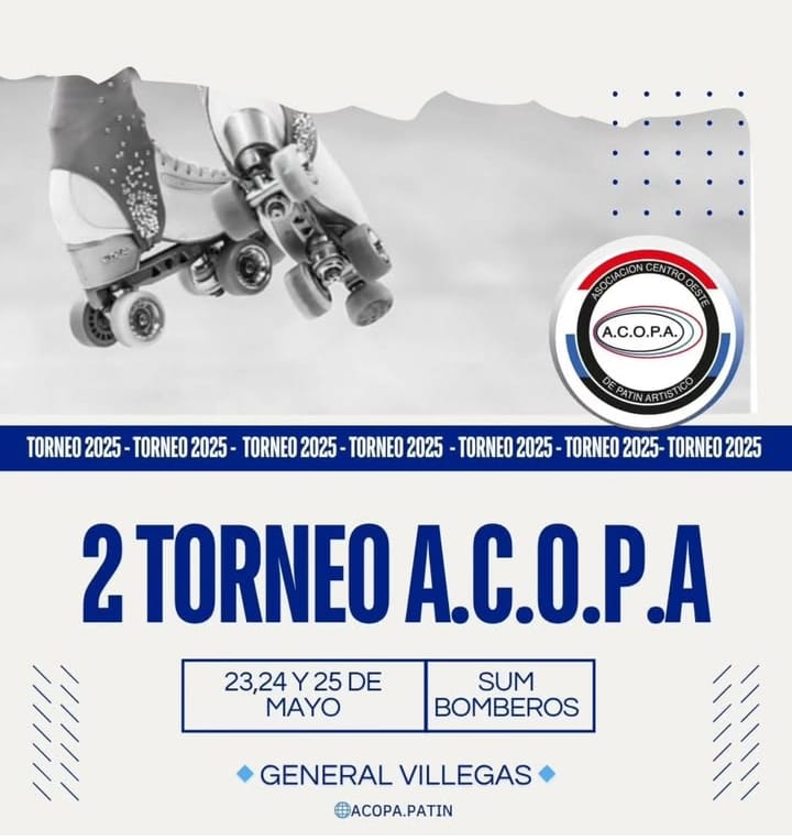 Se viene segundo torneo regional de Patín de la temorada 2025 de A.C.O.P.A. Sera el fin de semana que viene, sábado 24 y domingo 25 de mayo en General Villlegas.