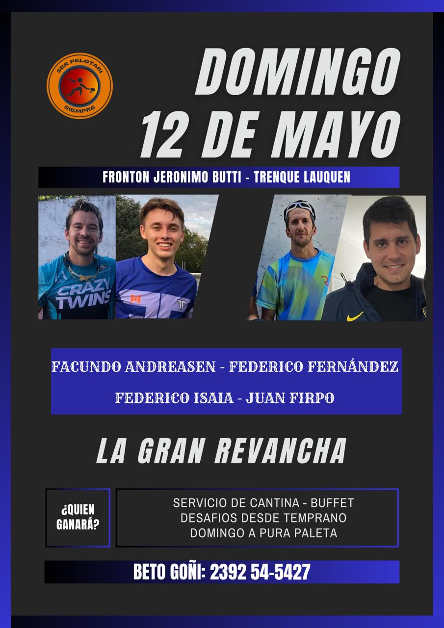 Pelota Paleta en Trenque Lauquen el domingo 12 de Mayo