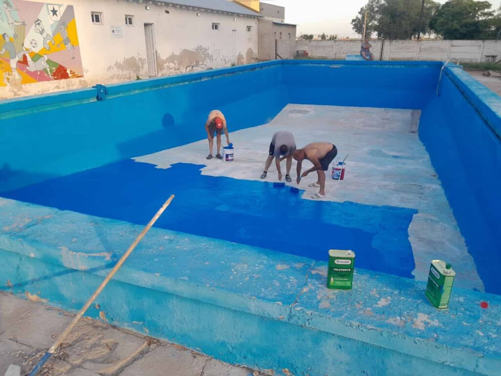 Cómo pueden observar en las fotos el trabajo fue largo. Tuvimos que pintar el suelo de las piletas con una pintura especial que se adhiere al piso, por lo que hubo que picar el piso -levantando las baldosas- con mucho cuidado y por momentos fue un trabajo de una manera muy artesanal.
