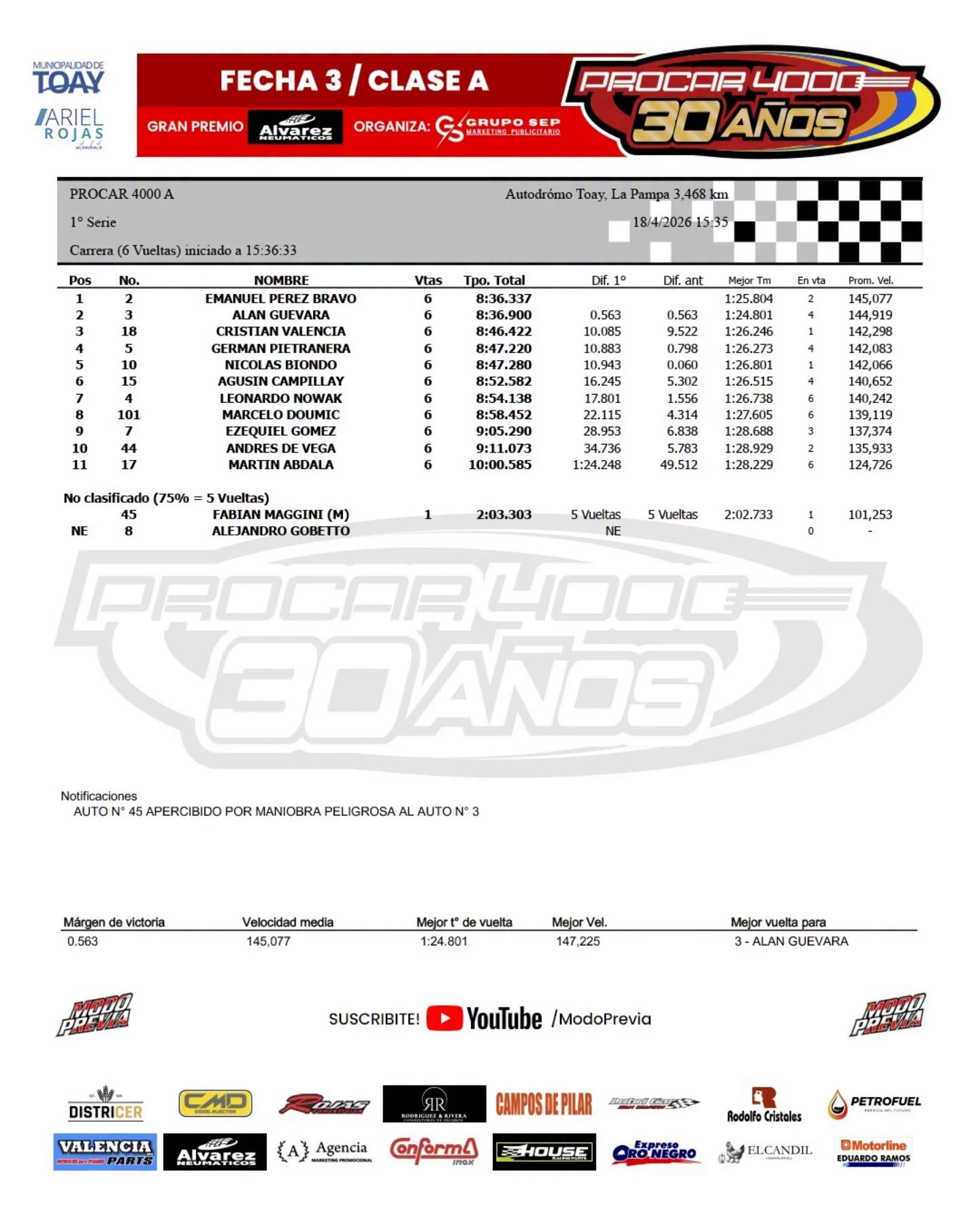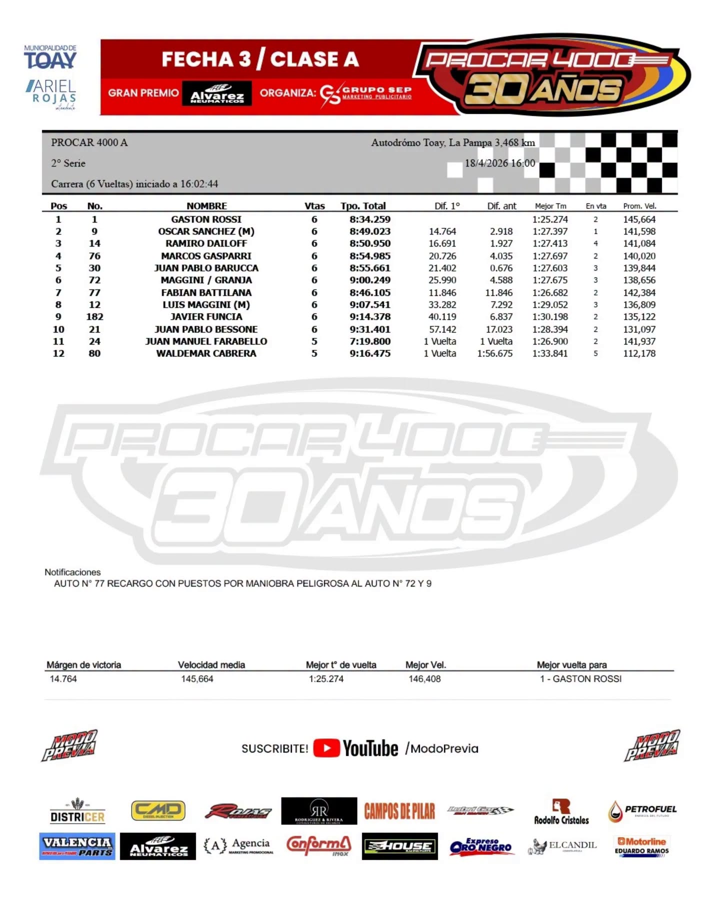 En la continuidad del GP Álvarez Neumáticos cerrando la jornada para la divisional mayor del Procar 4000 se disputaron las dos series clasificatorias.