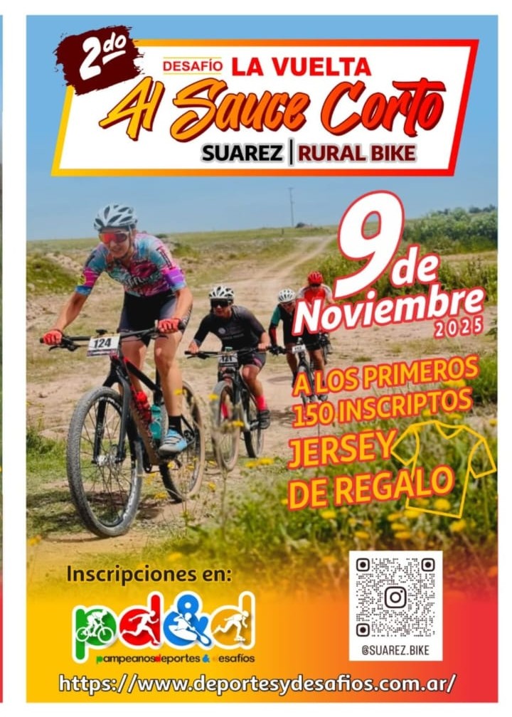 Este 9 de noviembre te invitamos al 2do desafio Vuelta al Sauce Corto, en Coronel Suárez, una carrera por demás desafiante y atractiva carrera pensada por ciclista para ciclista, en un ambiente natural unico.