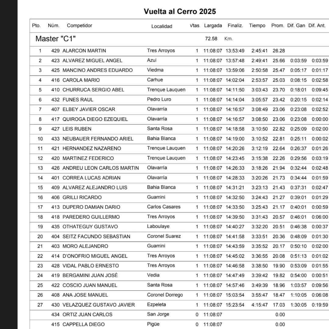 Entre los participantes locales, Sergio Churruca logro el 5to puesto en la clasificación categoría Master C1.