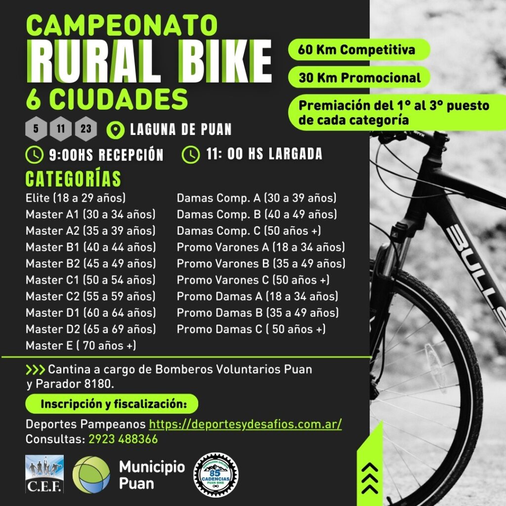 CICLISMO CERTAMEN REGIONAL RURAL BIKE EL SEIS CIUDADES Y SU INICIIO EN PELLEGRINI SE POSTERGO PARA EL DOMINGO 10 DE MAYO Por Deportelauquen. EL SEIS CIUDADES DEL RURAL BIKE 2026 El Campeonato de Rural Bike Seis Ciudades comenzará en la ciudad de Pellegrini. La primera...