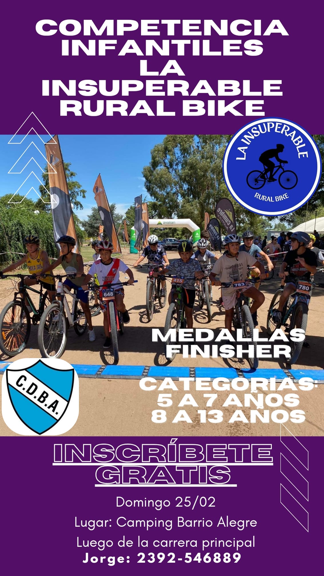 El Club Deportivo Barrio Alegre, anunció la realización de la prueba de Rural Bike denominada “La insuperable” para el domingo 25 de febrero 2024, se trata de la Cuarta edicion.