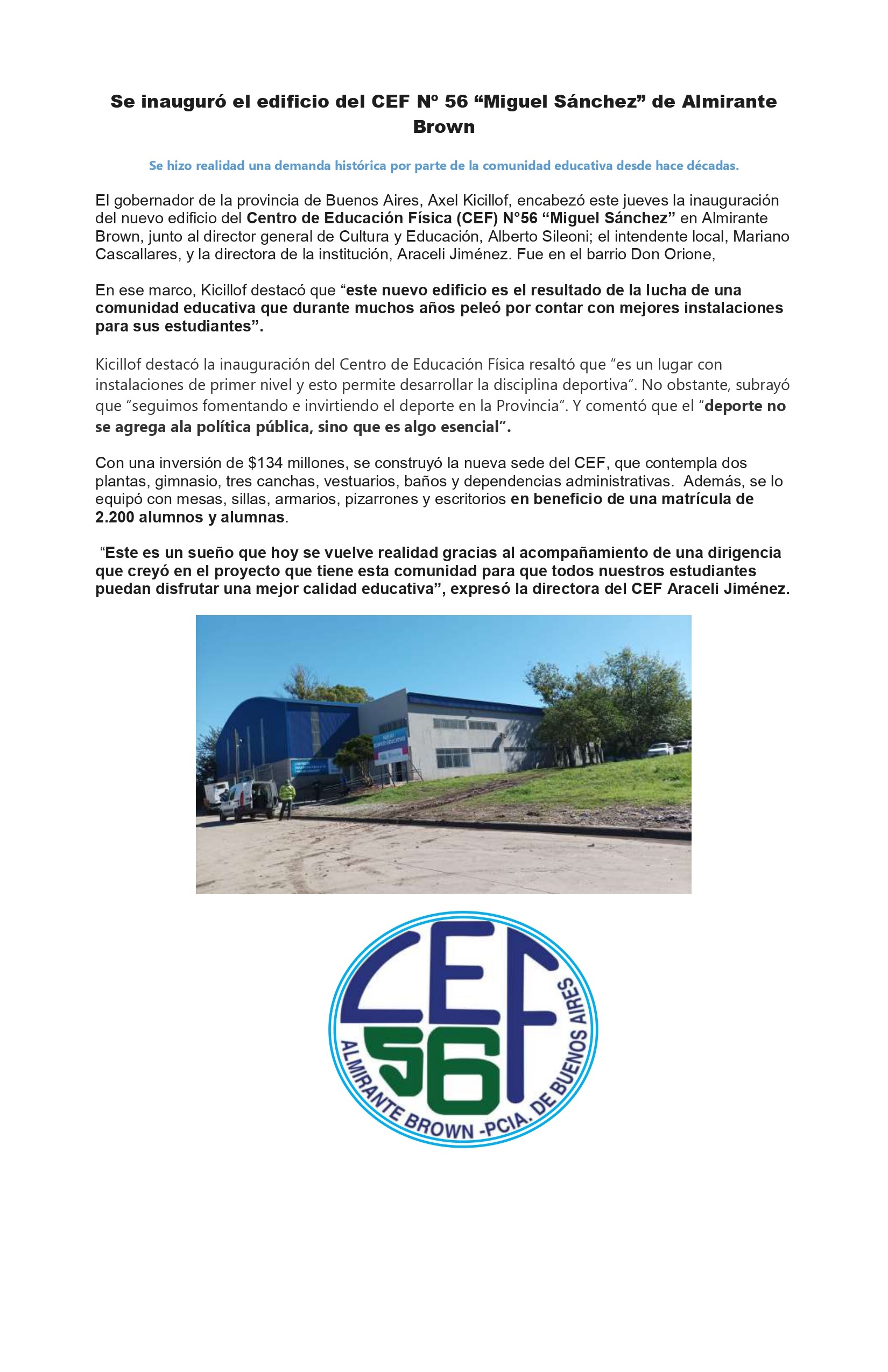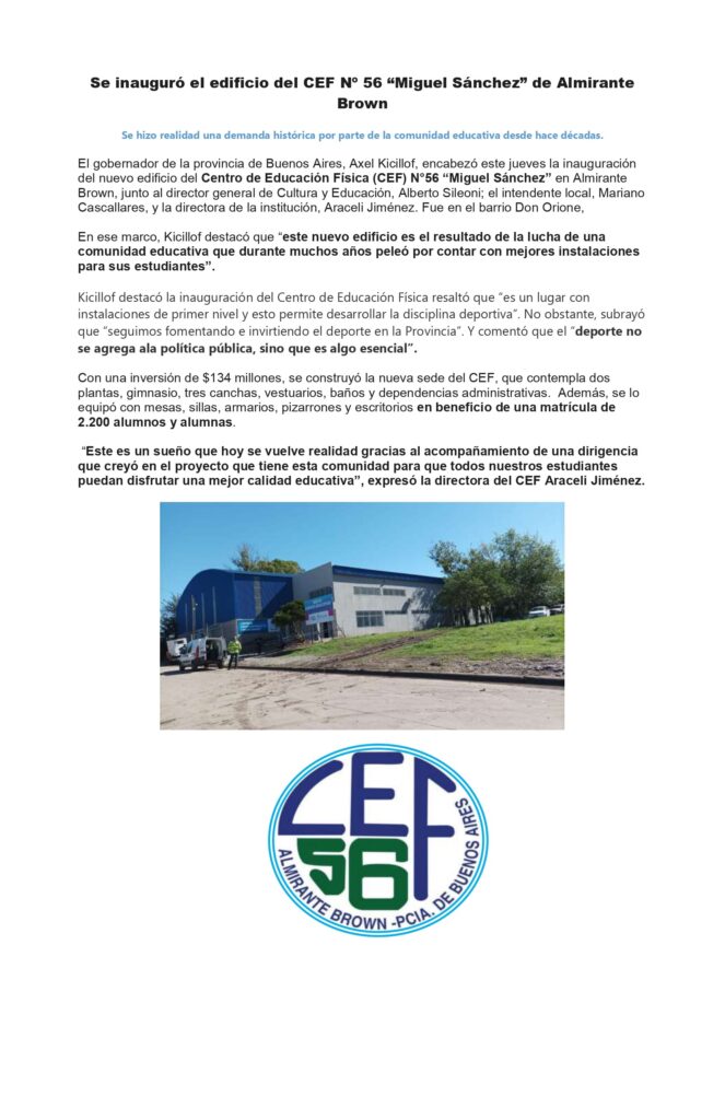 NUEVO EDICIO PARA EL CEF DE ALMIRANTE BROWN