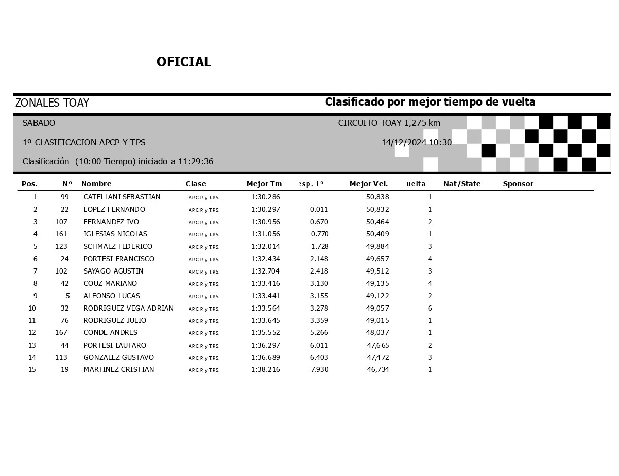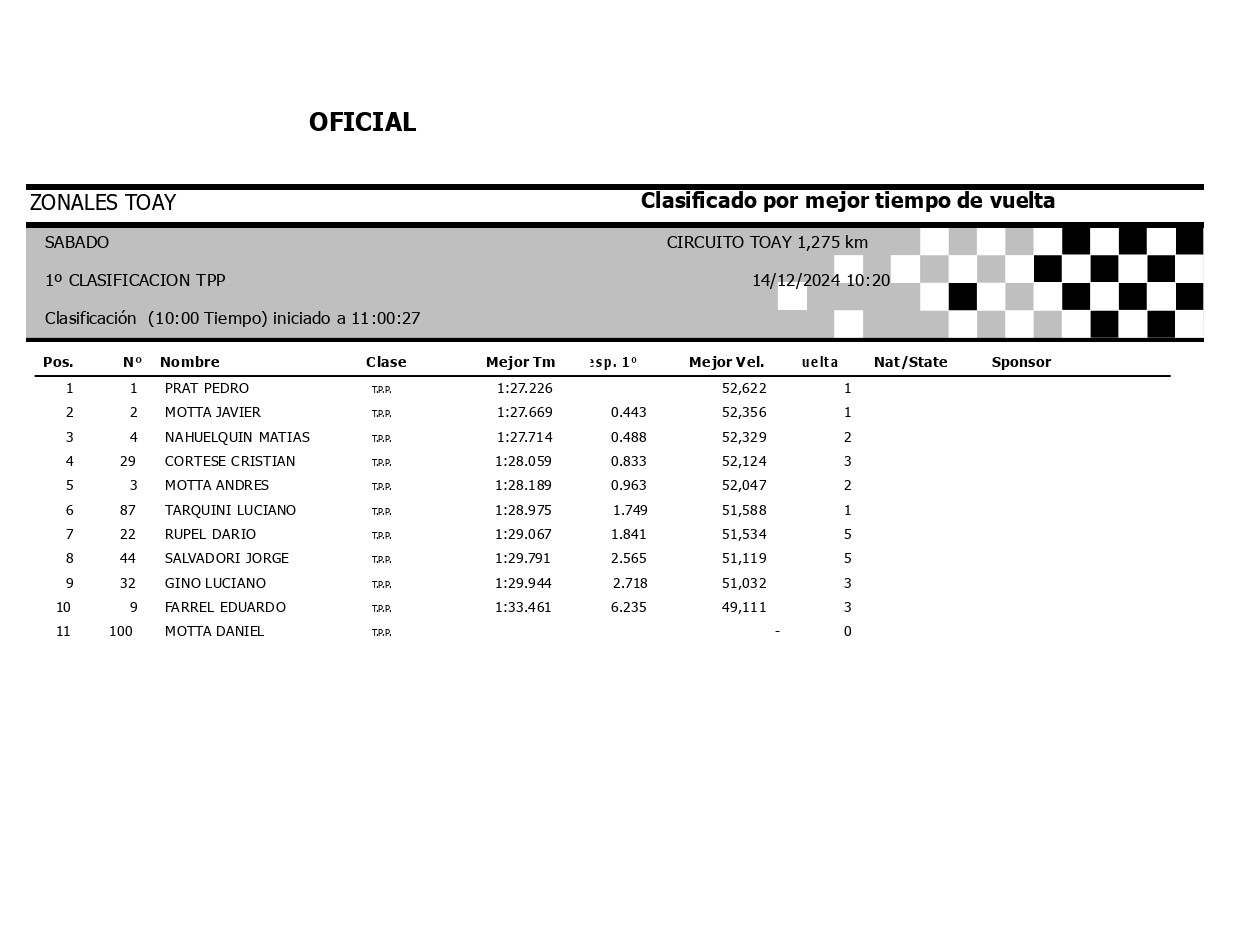 1RA CLASIFICACION TURISMO PISTA