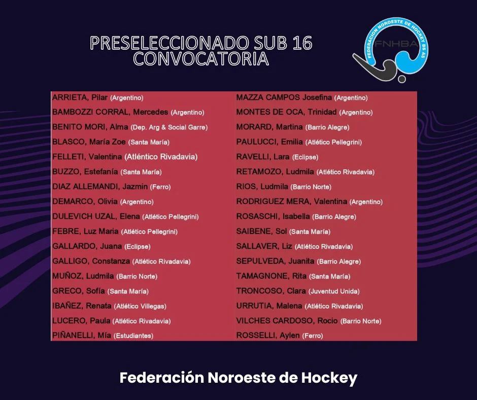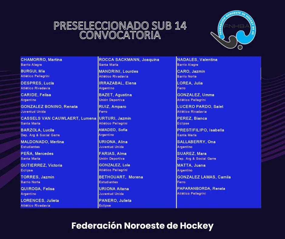 REGIONAL HOCKEY. FEDERACION NOROESTE CONVOCATORIA PARA SELECCIONADOS FEMENINOS ACTIVIDAD DE LOS PRESELECIONADOS DOMINGO 26 DE ABRIL Cancha de Argentino ++++++++++++++++++ ACTIVIDAD PROYECCIÓN SUB 14 DOMINGO 26 DE ABRIL Cancha de Barrio Alegre...