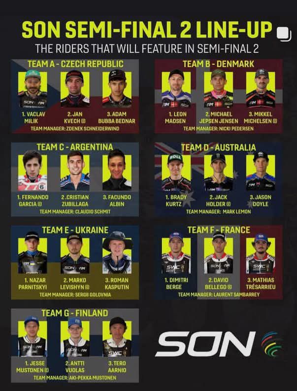 Desde un punto de vista deportivo, los argentinos son claramente menos favoritos en la segunda semifinal, que se celebrará el miércoles 1 de octubre en Thorn (Torun), pero la expectación es enorme. Entrené mucho en Argentina, envié muchas de mis piezas a Holger y me preparé bien. La semana pasada corrí una carrera en Argentina y luego vine aquí. Nunca había competido en un recinto tan grande y soy respetuoso con la idea de correr frente al público polaco», declaró García a SPEEDWEEK.com, quien quiere aprender de los mejores. «Tenemos que ser realistas; este es el Campeonato Mundial y cada país tiene una parrilla muy fuerte. Pero el speedway es el único deporte donde un piloto reserva a veces puede vencer a un campeón del mundo. Pero también sé lo que se necesita para lograrlo y competir a este nivel. Estamos contentos de participar por primera vez. Hemos recibido comentarios positivos sobre nuestra participación y todos están entusiasmados. Esperemos que el deporte pueda crecer gracias a nuestra participación, y quizás más pilotos de Europa vengan a nosotros este invierno». El argentino también destacó la importancia de Holger Lund: «El hecho de que participemos en el SON es gracias a Holger, quien nos apoya en todo, y pudimos enviarle todo, desde piezas hasta trajes. También hemos aprendido mucho de él, especialmente en lo que respecta a los embragues, y es un esfuerzo enorme el que tenemos que hacer para esta carrera. No sería posible sin él».
