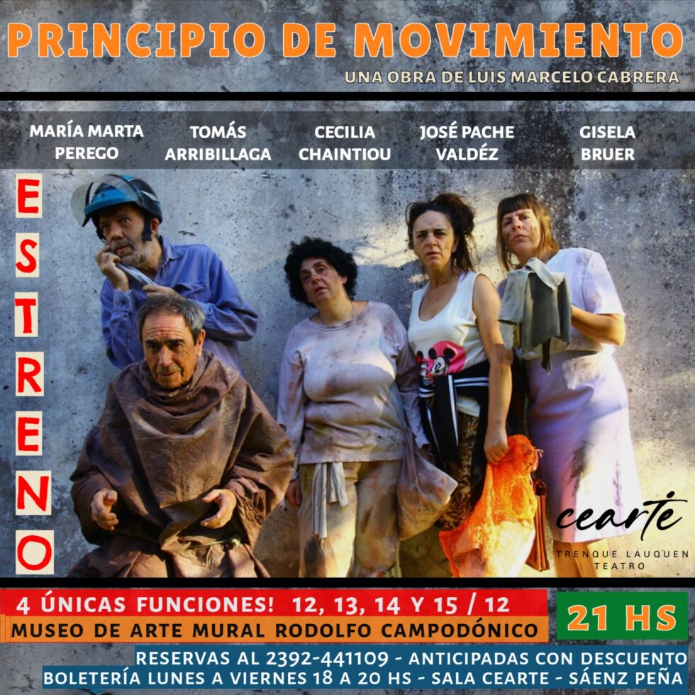 Se trata de “Principio de movimiento”, de Luis Marcelo Cabrera, que se estrenará este jueves (12) y se repondrá hasta el domingo inclusive, a las 21 en el Museo “Rodolfo Campodónico”, ubicado en Rivadavia 163, en el cuadro de la Estación.