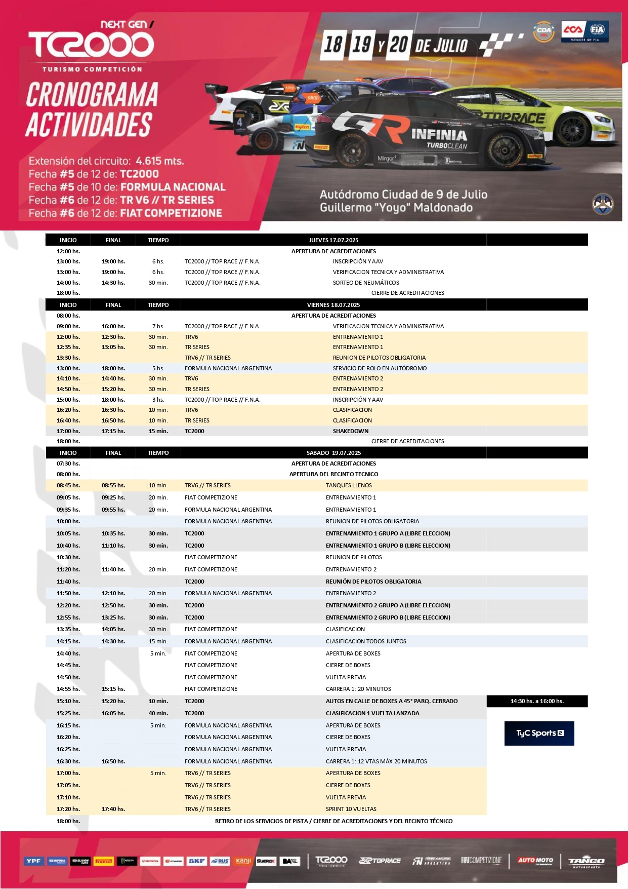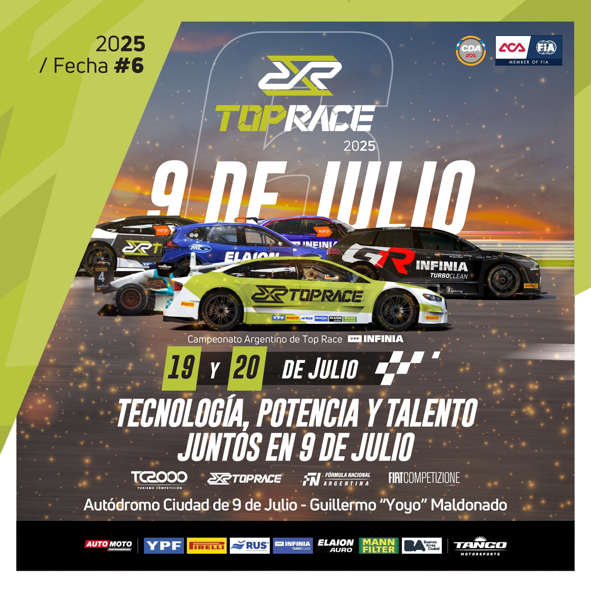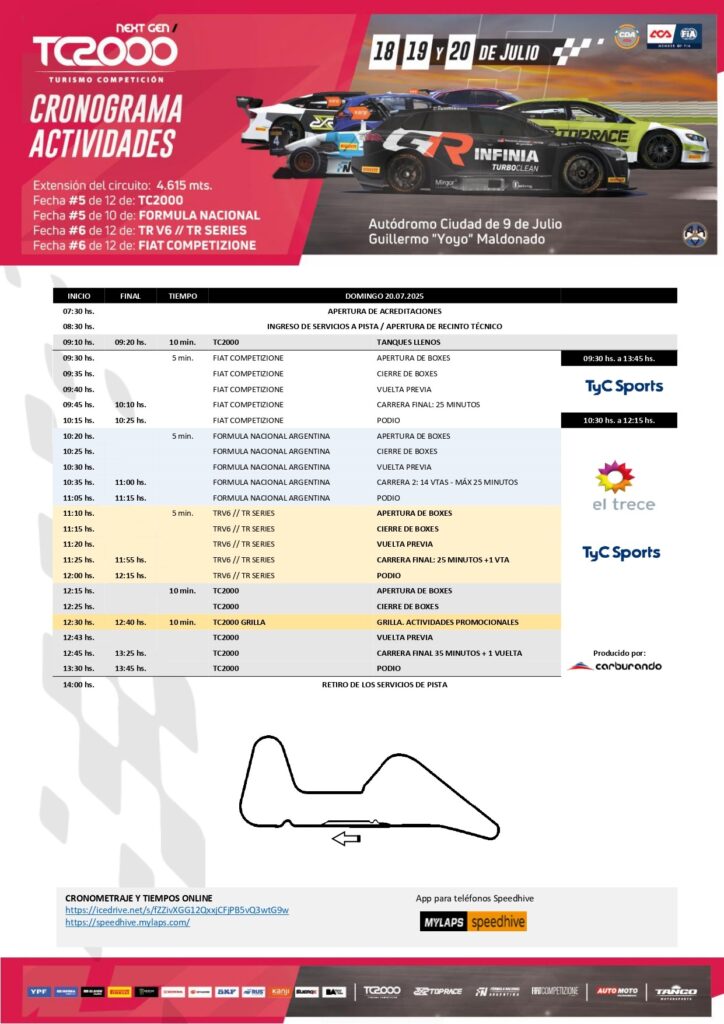 El viernes 18 de julio se presentará de manera oficial la 6º fecha del 31º Campeonato Argentino de Top Race YPF INFINIA que el próximo fin de semana volverá después de dos años al Autódromo Ciudad de 9 de Julio Guillermo “Yoyo” Maldonado junto al 46º Campeonato Argentino de TC2000 YPF INFINIA, el Campeonato Argentino de Fórmula Nacional y la Fiat Competizione.