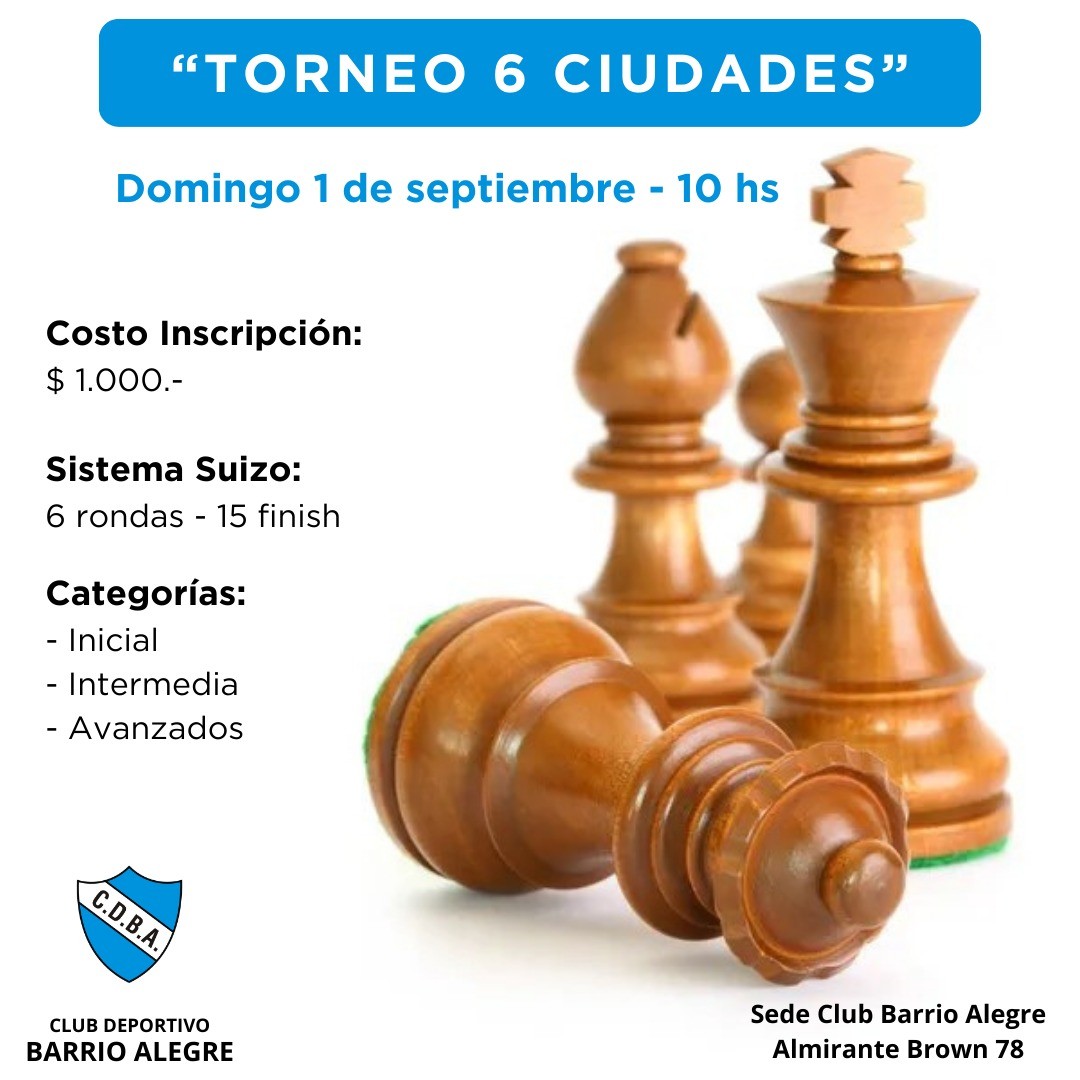 El próximo domingo a partir de la hora 10 se realizará en la Sede del Club Barrio Alegre el Torneo de Ajedrez correspondiente al calendario “Seis Ciudades”.